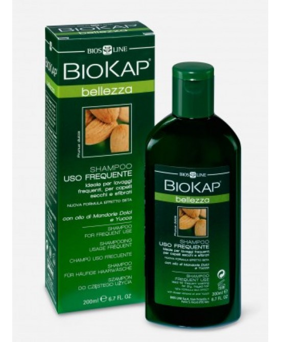 Gli oli e gli estratti erboristici contenuti in Biokap svolgono un’azione integrata (emolliente, idratante, detergente, dermopurificante) per il benessere del capello e della cute. Biokap Shampoo Uso Frequente vi assicura una delicata detersione quotidiana e rende la capigliatura soffice e luminosa. Il delicato profumo di Mandorle lascia i capelli setosi e piacevolmente profumati.