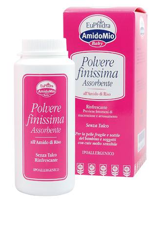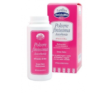 L'amido di riso, dalle particelle finissime, non ostruisce i pori della pelle permettendo la naturale traspirazione dell'epidermide.